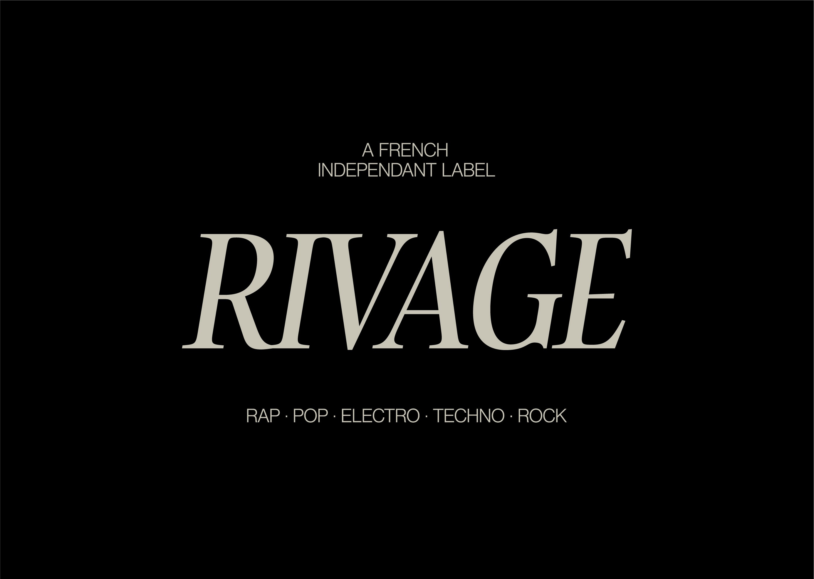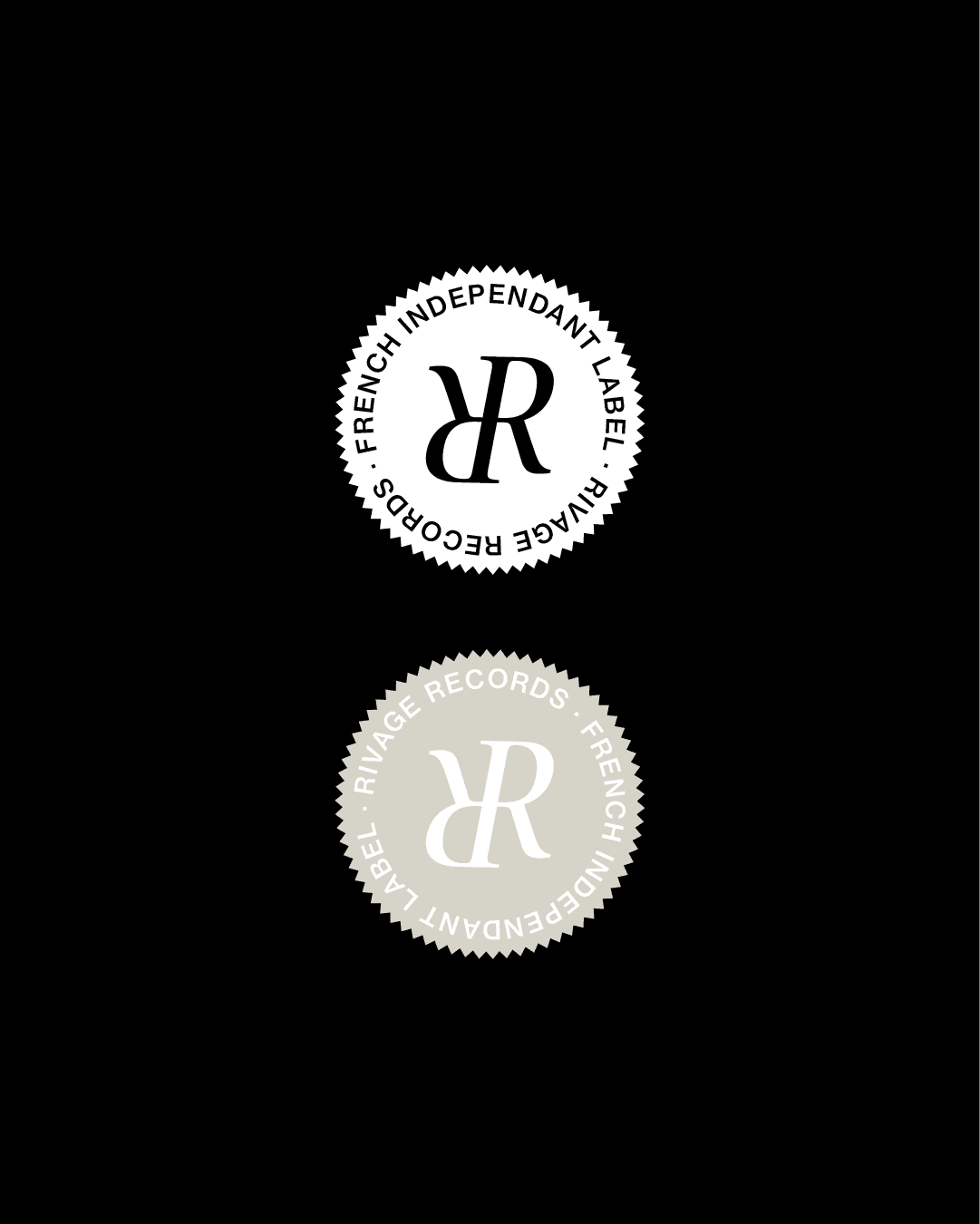 Le logo de Rivage repose sur une typographie élégante dont la forme en arc de cercle évoque le mouvement d'une vague. Composé de deux R retournés, il symbolise le renouveau constant et joue sur un effet d'ambigrame : le logo reste lisible lorsqu'il pivote, comme au centre d'un vinyle.